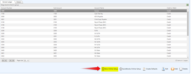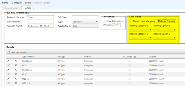 Detail Line mapping is an option that allows you to more granularly push data into specific accounts. For example, we see that there are six(6) detail lines that are specifying what data is to be pulled into this account. If you have need to map the detail lines to different accounts, that can be done by checking the “Detail Lines Mapping” box before going into the Xero setup screen. This will result in the setup screen below.
