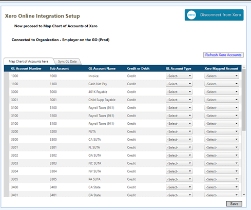 From here, you can select the account that you wish the GL account in Employer on the GO to map to in Xero.