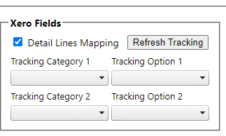 Tracking Categories are available in order to tag the data to specific places in Xero. Its up to the user how they have their categories set up in Xero, but the most common example would be that of tagging accounts to locations and departments. You will notice that there are four(4) fields regarding tracking categories available to each account. This is done to allow you to specify which type of tracking category you want to use and then pick from the values of the category from Xero.
